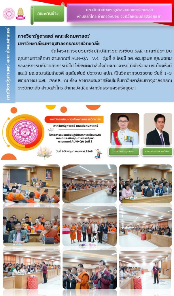 โครงการฝึกอบรมเกณฑ์การตรวจประเมินคุณภาพการศึกษาภายใน ระดับหลักสูตร (เกณฑ์มาตรฐานหลักสูตรระดับปริญญาตรี ระดับบัณฑิตศึกษา พ.ศ. ๒๕๖๕)และแนวทางการเขียนรายงานการประเมินตนเอง (SAR) ระดับหลักสูตรข่าวพัฒนาบุคลากร / By ผู้ดูแล เว็บไซต์กองกลาง / 15 ตุลาคม 2025 15 ตุลาคม 2025 จำนวนคนดู : 7